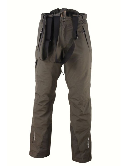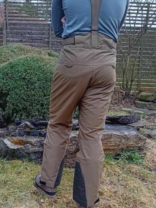 Zvýšený pas kryje a zatepluje záda, dobře sedí. Speciální Relax rozepínání na zipy v pase umožňují přizpůsobit obvod typu postavy. Kalhoty nikde neškrtí ani s páteřákem. V bocích jsou uzavíratelné kapsy a pas podrží odepínací šle.